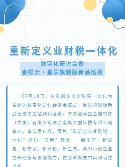 首頁(yè) > 新聞資訊 > 重新定義業(yè)財(cái)稅一體化數(shù)字化研討會(huì)暨金蝶云·星辰旗艦版新品巡展南昌站