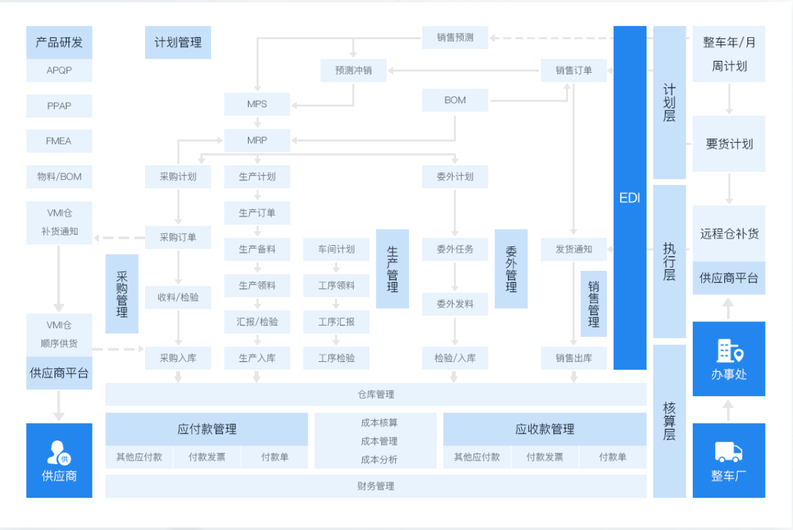 提供主機廠EDI接口、供應鏈協(xié)同平臺構(gòu)建汽車產(chǎn)業(yè)上下游高效協(xié)同體系,快速響應市場變化